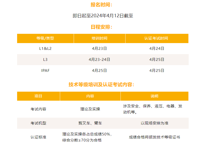 【開(kāi)始報(bào)名】歐歷勝2024年度高機(jī)技術(shù)&IPAF安全操作培訓(xùn)活動(dòng)